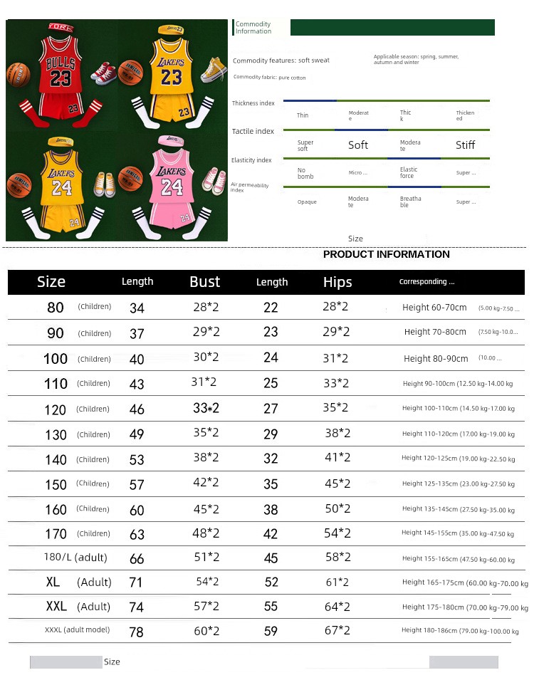 Basketball Wear Suit Pure Cotton Matching Jersey Photo Baby Birthday Party James 23 Kobe 24 Boys and Girls Costumes